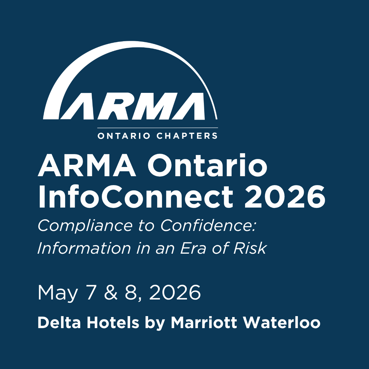 The ARMA Ontario Chapters: Ottawa, Southwestern Ontario, and Toronto, are pleased to present ARMA Ontario InfoConnect 2026, Compliance to Confidence: Information Governance in an Era of Risk.